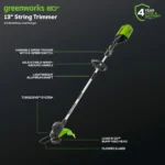 Easily rip through the toughest weeds with the Greenworks Pro 80V Cordless 13″ String Trimmer. It features a front-mount Torqdrive motor but is lightweight, ergonomic and easy to use. Trimmer is equipped with a Dual line Bump feed head, variable speed trigger and Torqdrive motor. The Greenworks lineup features 75+ high-performance Pro 80V tools, allowing you to ditch your gas tools for an innovative, eco-friendly alternative. Life. Powered by Greenworks.